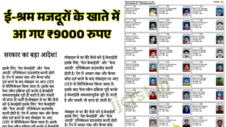 E Shram Card Kist: देश के असंगठित क्षेत्र में काम करने वाले करोड़ों मजदूरों के लिए केंद्र सरकार की ई-श्रम कार्ड योजना एक महत्वपूर्ण पहल साबित हो रही है। यह योजना उन श्रमिकों को डिजिटल पहचान देती है जो रोजाना मेहनत-मजदूरी करके अपने परिवार का भरण-पोषण करते हैं लेकिन किसी भी तरह की सामाजिक सुरक्षा … Continue reading E Shram Card Kist: ई श्रम कार्ड योजना के तहत सभी मजदूरों के खाते में आई ₹9000 रुपए की राशि, देखें अपना मैसेज !