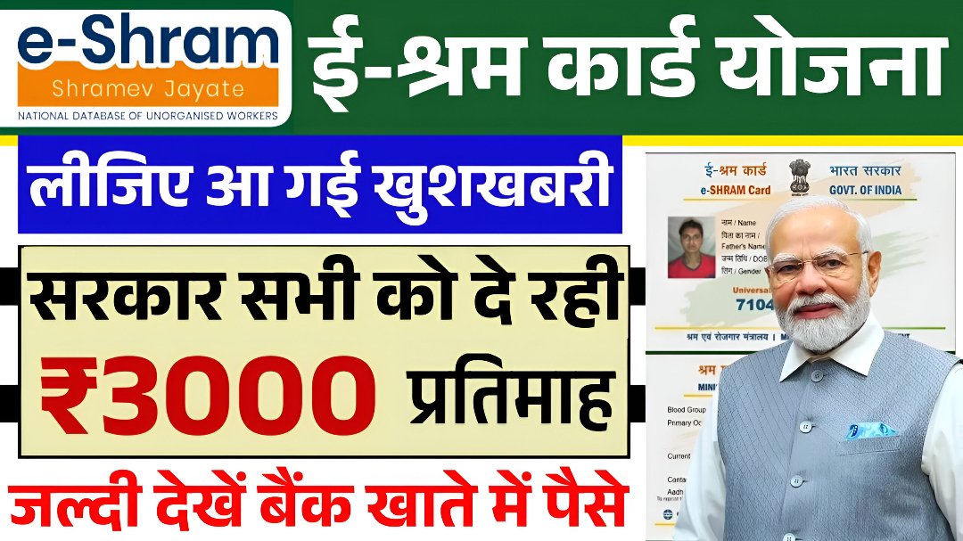 भारत सरकार ने असंगठित क्षेत्र के मजदूरों और श्रमिकों के लिए e-Shram Pension Yojana 2025 की शुरुआत की है। इस योजना के तहत ऐसे मजदूर जो ई-श्रम पोर्टल पर रजिस्टर्ड हैं, उन्हें 60 वर्ष की आयु पूरी होने पर हर महीने ₹3000 की पेंशन दी जाएगी। इस योजना का मुख्य उद्देश्य वृद्धावस्था में आर्थिक सुरक्षा प्रदान करना है ताकि श्रमिकों को अपने जीवन के अंतिम चरण में किसी प्रकार की आर्थिक कठिनाई न हो। इसलिए आज के आर्टिकल में हम आपको श्रम कार्ड योजना के बारे में पूरी डिटेल जानकारी देंगे चली जानते हैं